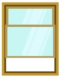 A single hung window has a stationary top panel, while the bottom panel slides up and down.